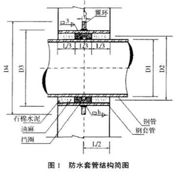 各類混凝土水池、井室是污水處理廠的主要構(gòu)筑物,這些構(gòu)筑物因工藝需要往往設(shè)置了大量的防水套管,防水套管的安裝質(zhì)量是評價構(gòu)筑物使用功能的重要指標之一。預(yù)埋防水套簪安裝不當會造成構(gòu)筑物滲漏或后續(xù)管道無法安裝,因此預(yù)埋套管的安裝工程質(zhì)量顯得尤為重要。本文結(jié)合污水處理廠工程實際,針對防水套管的預(yù)埋安裝工程進行討論和分析研究。