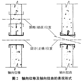 預(yù)埋套管安裝位置不準確的實際情況多為軸向位移與軸向扭曲的復(fù)合體。