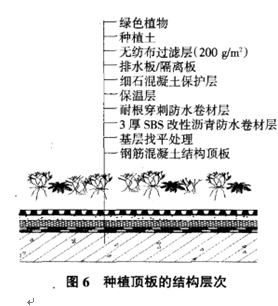 車庫種植頂板部位,防水構(gòu)造做法見圖6。